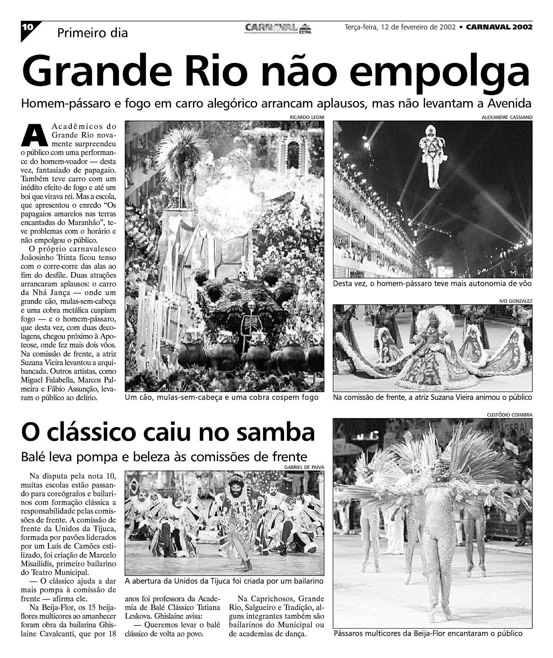 - ↑ a b c Galeria do Samba. «Grande Rio 2002». Consultado em 9 de fevereiro de 2014