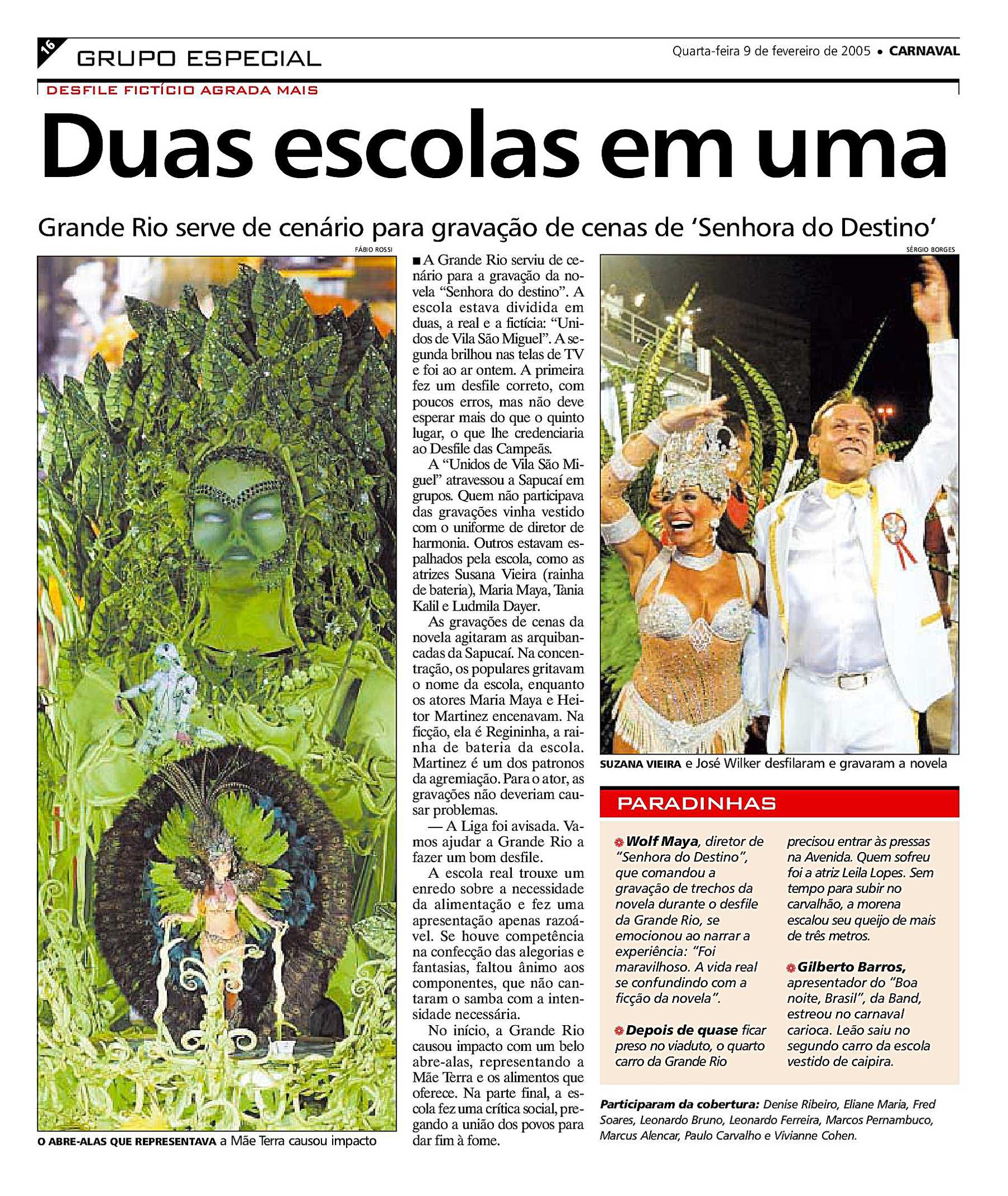 - ↑ O Fuxico (19 de fevereiro de 2010). «Paola Oliveira perde posto de Rainha de Bateria da Grande Rio». 8:02. Consultado em 21 de novembro de 2013