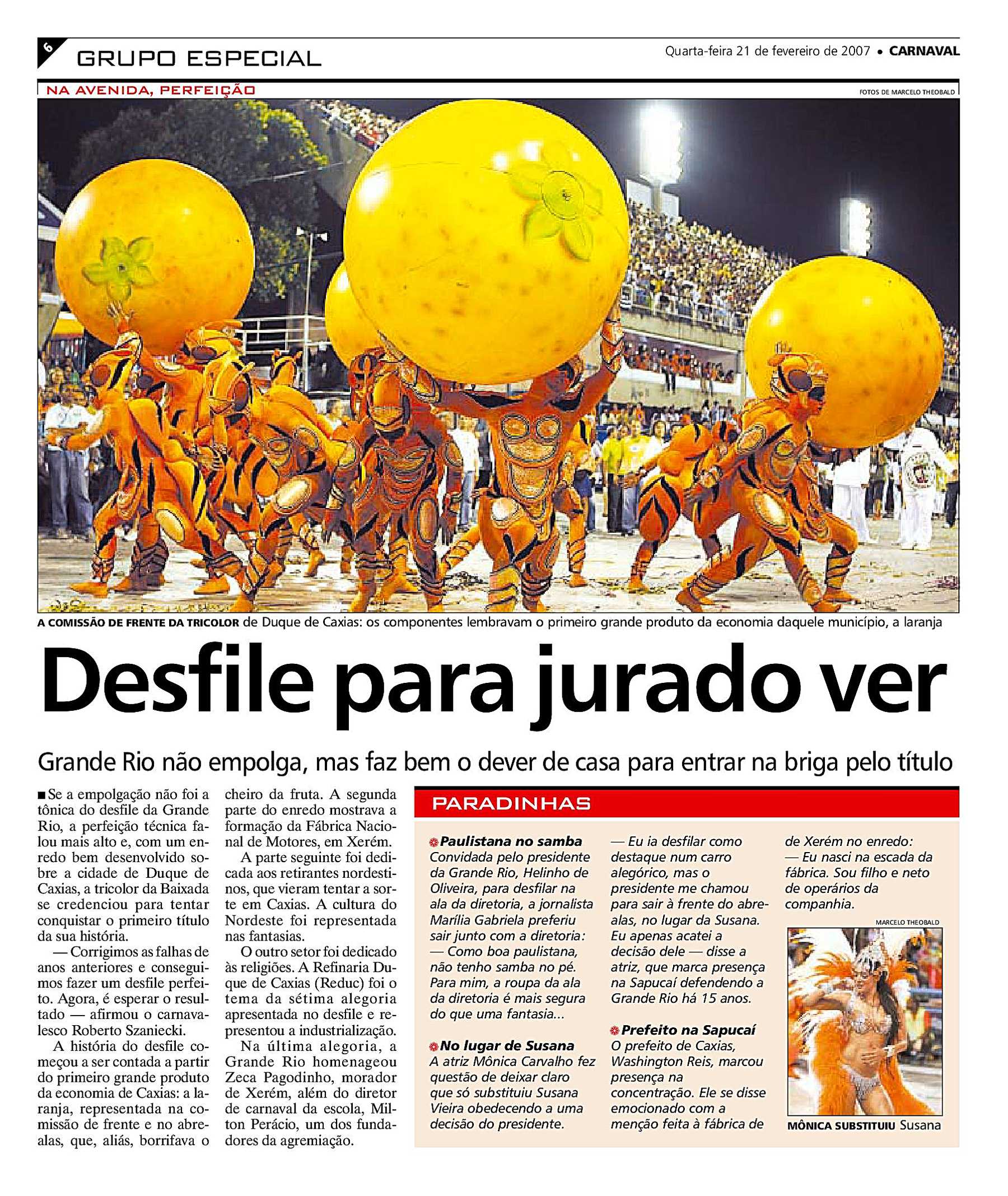 - ↑ EGO (17 de janeiro de 2010). «Paola Oliveira vai ao ensaio técnico da Grande Rio, na Sapucaí». 21h43. Consultado em 21 de novembro de 2013