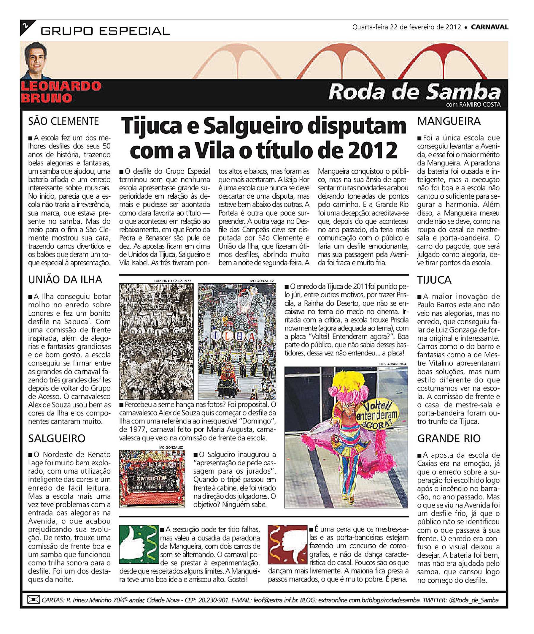- ↑ a b c d Galeria do Samba. «Grande Rio 2012». Consultado em 9 de fevereiro de 2014