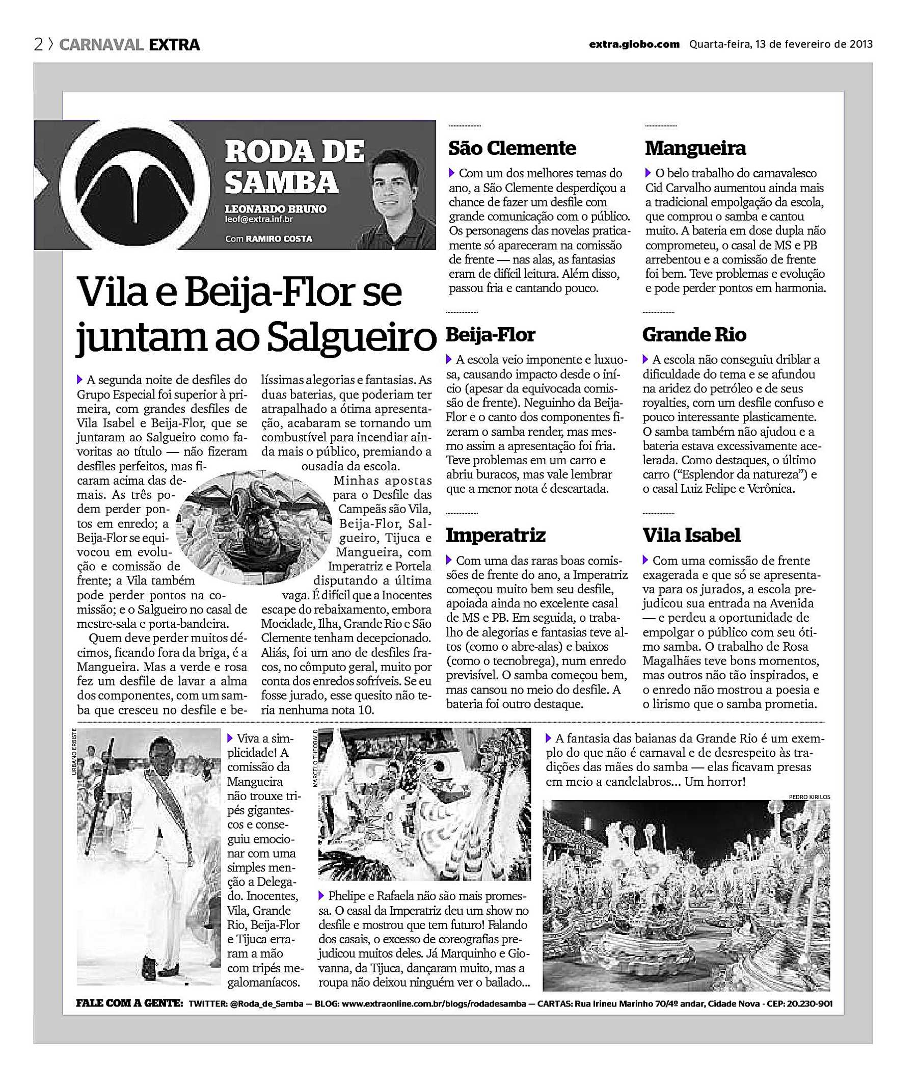 - ↑ a b c Galeria do Samba. «Grande Rio 2013». Consultado em 9 de fevereiro de 2014