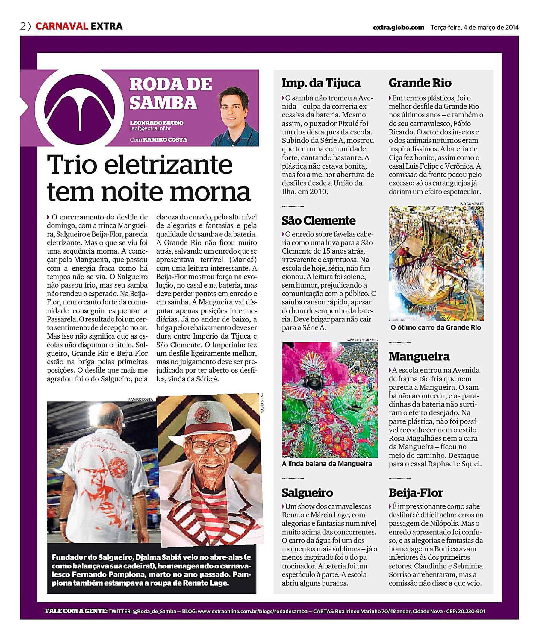 - ↑ a b c d e f Galeria do Samba. «Grande Rio 2014». Consultado em 9 de fevereiro de 2014